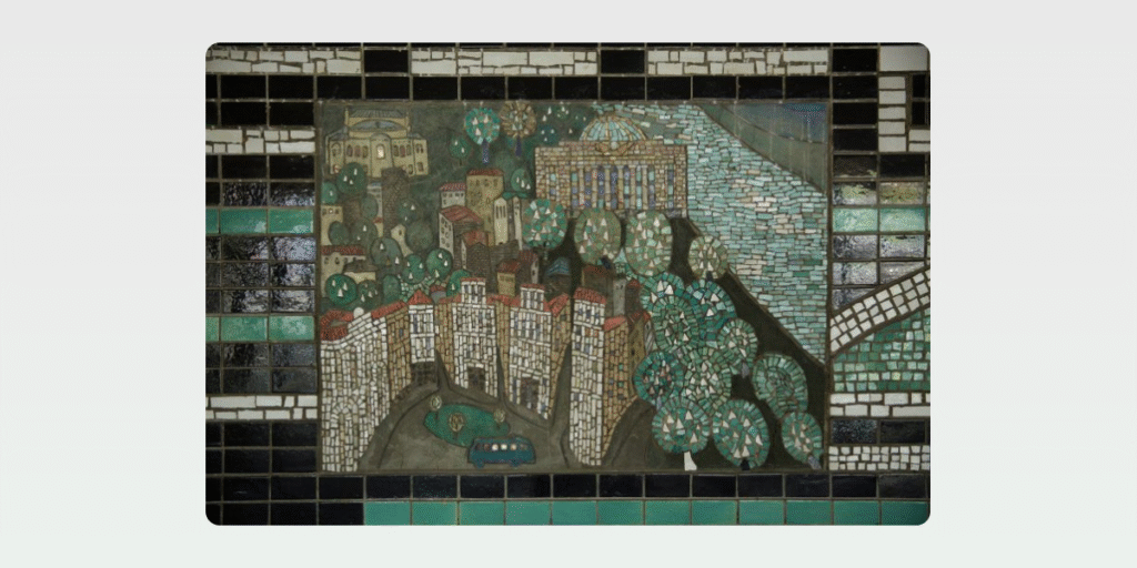 Фрагмент роботи Ади Рибачук і Володимира Мельниченка (АРВМ) на Центральному автовокзалі в Києві. Фото Ольги Чайко