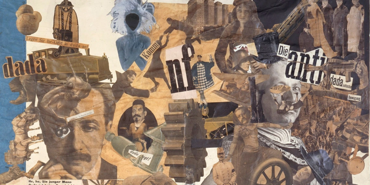 Фрагмент колажу Ганни Гьох «Розріз кухонним ножем Дада через пивне черево Ваймарської республіки», 1919 рік