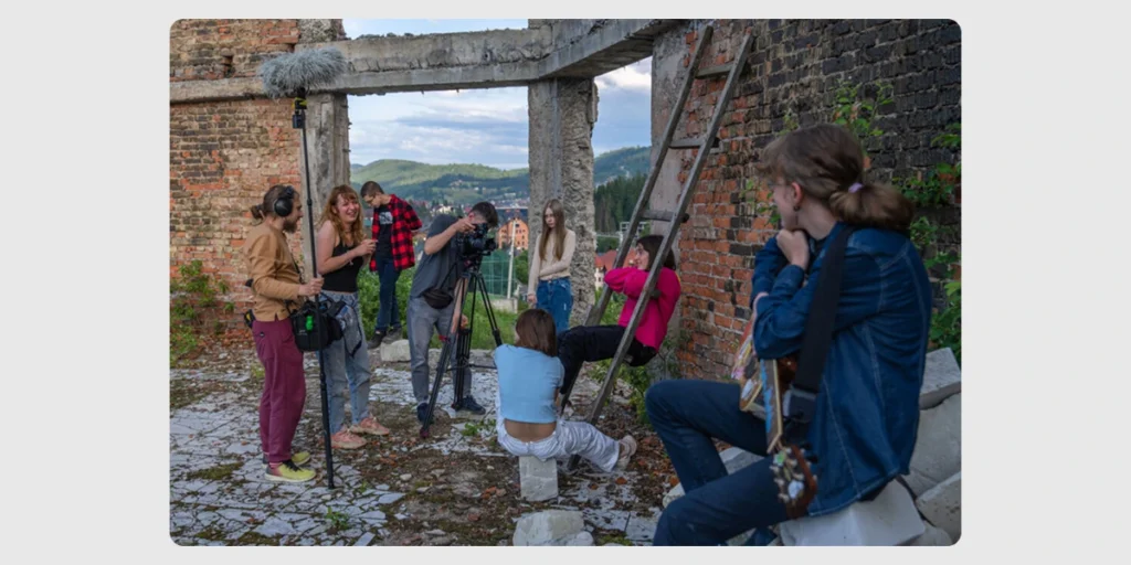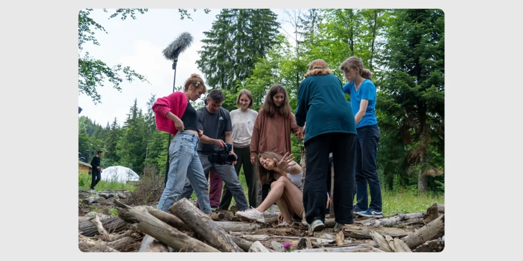 «Увесь час ми вважали: це про щось, що хвилює підлітків, що їм хотілося б сказати, але допомогли оформити ці переживання дорослі митці. Основна тема фільму — втрати через війну: фізичні, емоційні, дуже багато різних речей. Після цього ми вирішили продовжити напрямок. Для нас дуже знаково й цікаво бачити взаємодію дорослих митців з підлітками», — згадує Оля Микитчин.