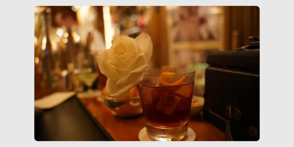 Інтер'єр бару та коктейль із квіткою. Джерело: forbes.com